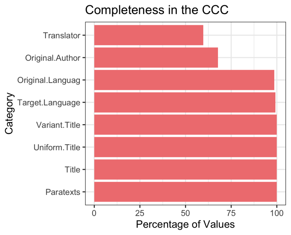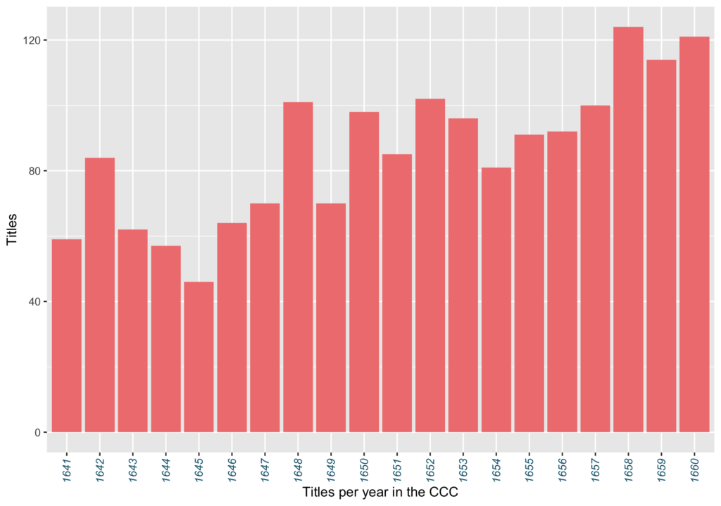 The CCC catalogue consists of 1726 titles or bibliographic entries that represent 778 authors and 533 translators in addition to stationers and printers.